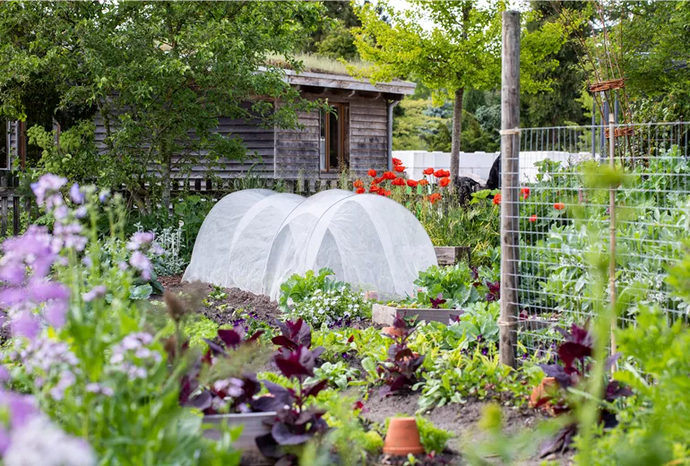Gemüsebeet mit Pflanztunnel